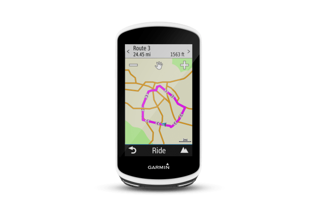 Preloaded on the Edge 1030, the Garmin Cycle Map includes turn-by-turn navigation and new alerts that notify riders of sharp curves ahead. While riding, cyclists will receive elevation information, see points of interest and be able to search for addresses – all right on their screen. By inputting a distance and starting direction, the Edge 1030 will give riders up to three round-trip routes to choose from and will guide cyclists back to the route if they stray away. Built-in GPS, GLONASS and altimeter sensor capabilities also provide accurate ride data so cyclists know how far, fast and high they ride.